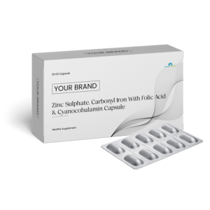 - Product Details: Generic Name Zinc Sulphate, Carbonyl Iron with Folic Acid & Cyanocobalamin Capsule Active Ingredient Zinc Sulphate, Carbonyl Iron, Folic Acid, Cyanocobalamin Manufacturer Invision Pharma Limited. Form Capsules Brand Private Label Shelf Life 18 Months Country of Origin Made in India Description: Featuring the powerhouse combination of Zinc Sulphate, Carbonyl Iron, Folic Acid, and Cyanocobalamin. Crafted with precision and…